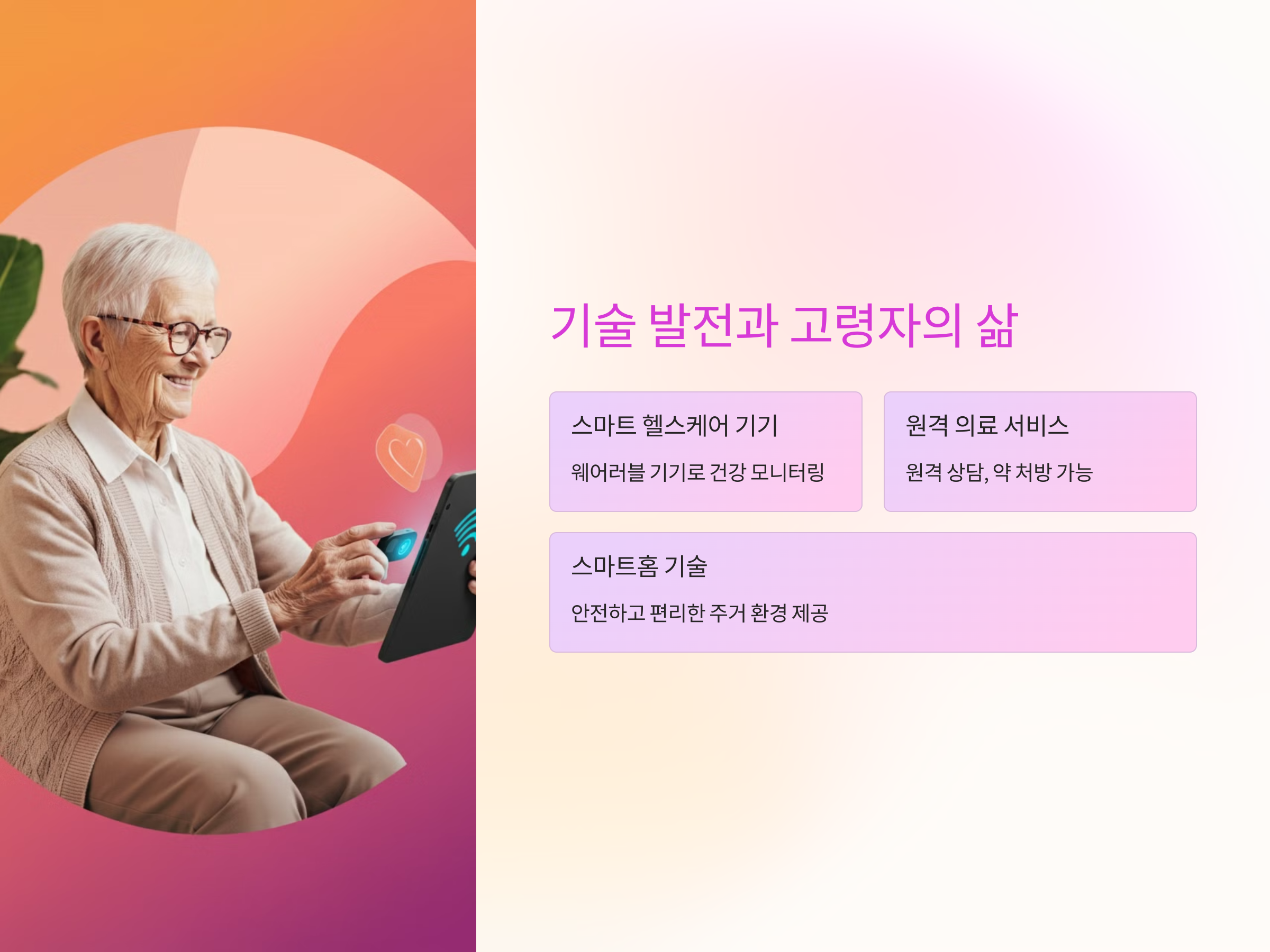 기술이 고령자의 삶에 어떻게 도움을 줄 수 있나요?