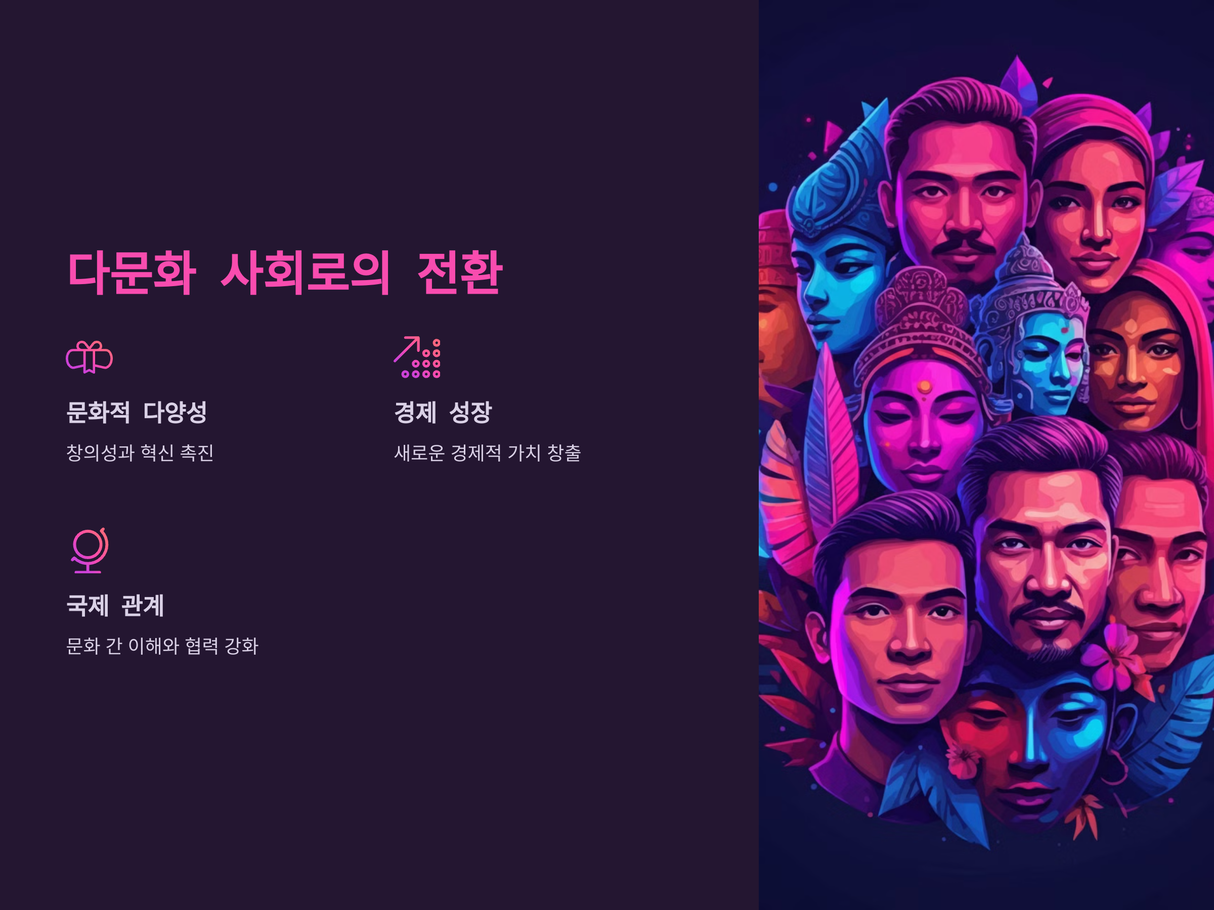 - 문화적 다양성 증가: 다양한 문화가 융합하며 창의성과 혁신이 촉진됩니다.