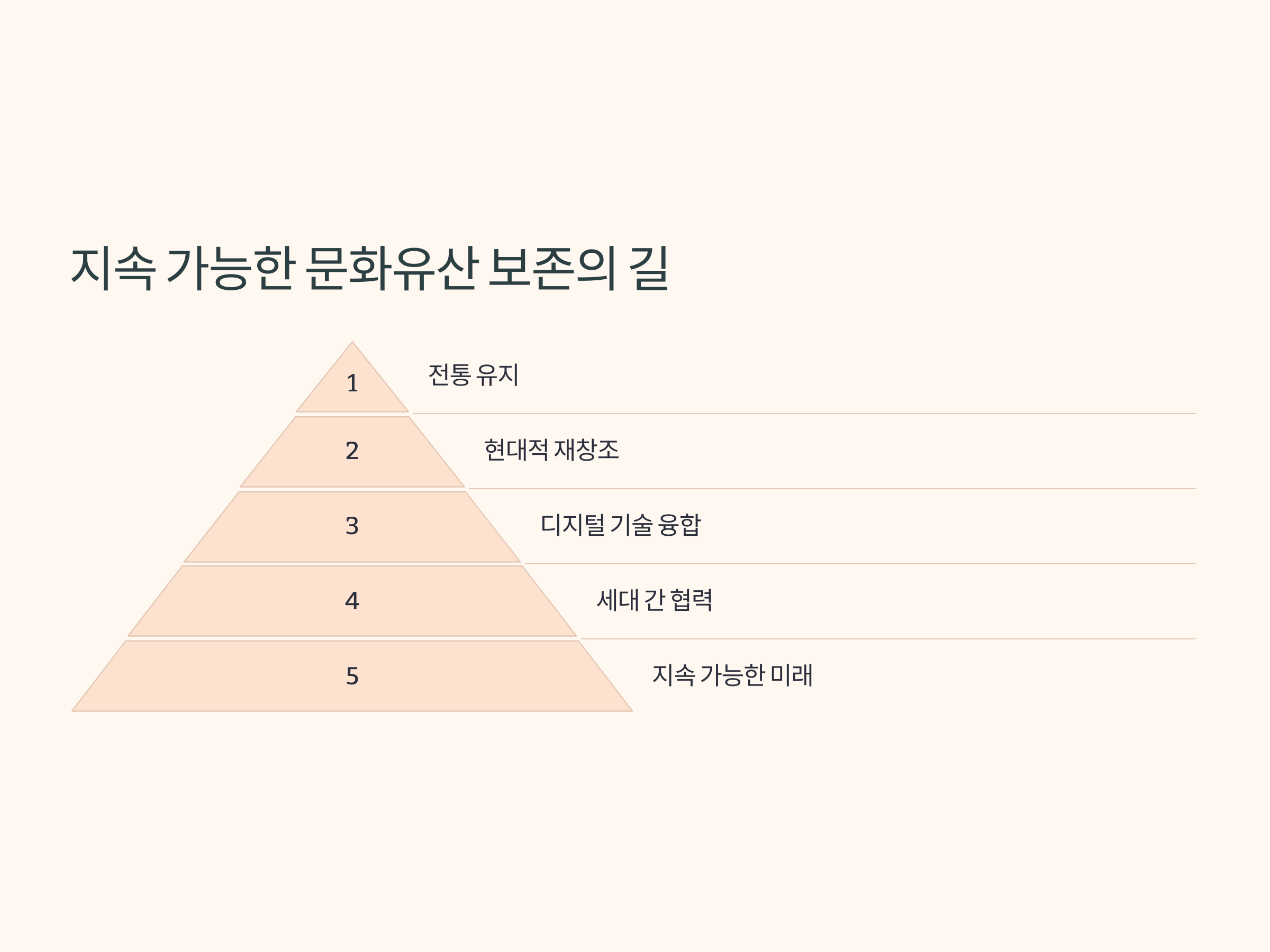 고령화 시대의 문화유산 보존은 단순히 전통을 유지하는 것을 넘어, 이를 현대적 가치로 재창조하고 활용하는 것이 중요합니다. 고령층의 경험과 디지털 기술의 융합은 문화유산의 지속 가능성을 높이는 핵심 요소입니다.