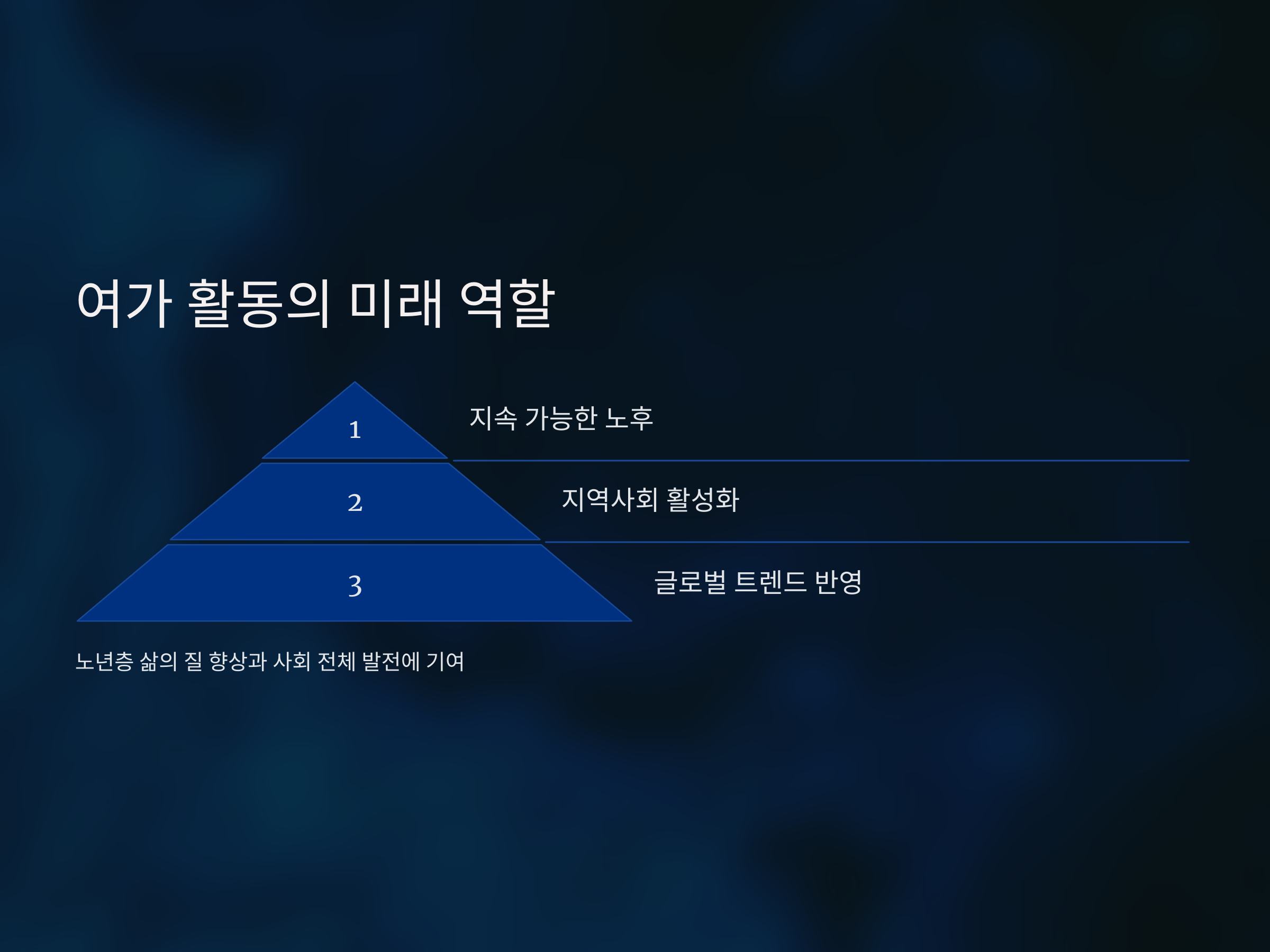 고령화 시대는 도전이지만, 올바른 여가 활동을 통해 기회로 바뀔 수 있습니다. 이는 노년층뿐만 아니라 사회 전체의 지속 가능성을 높이는 중요한 열쇠입니다.