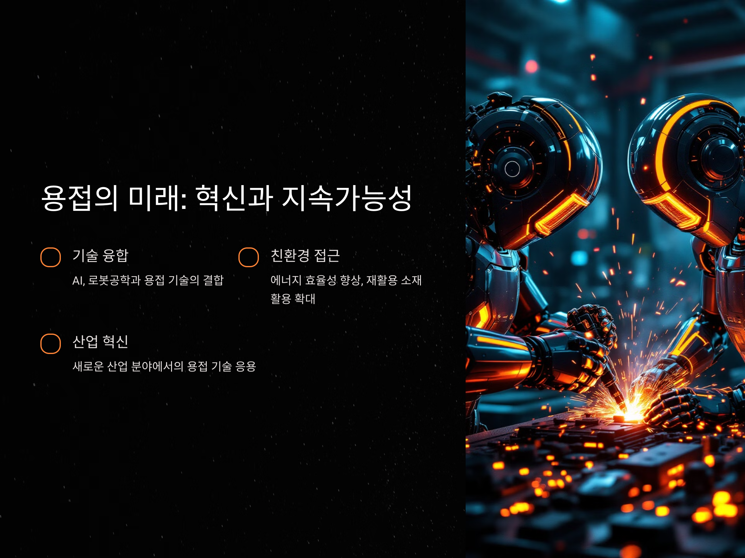 - 로봇과 자동화: 4차 산업혁명과 함께 로봇 용접 기술이 확산되고 있습니다.