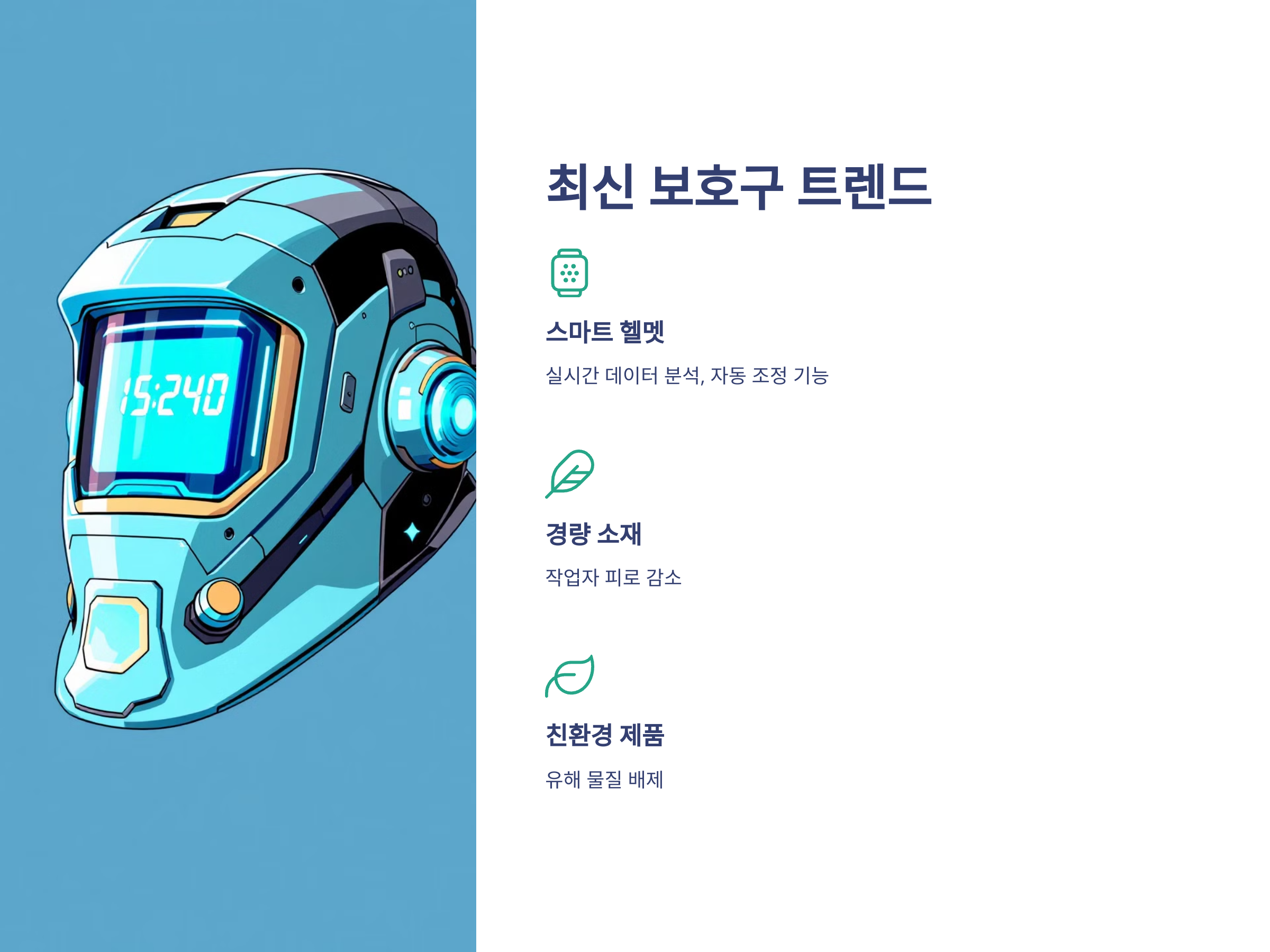 - 스마트 헬멧: 실시간 데이터 분석 및 자동 조정 기능 포함.