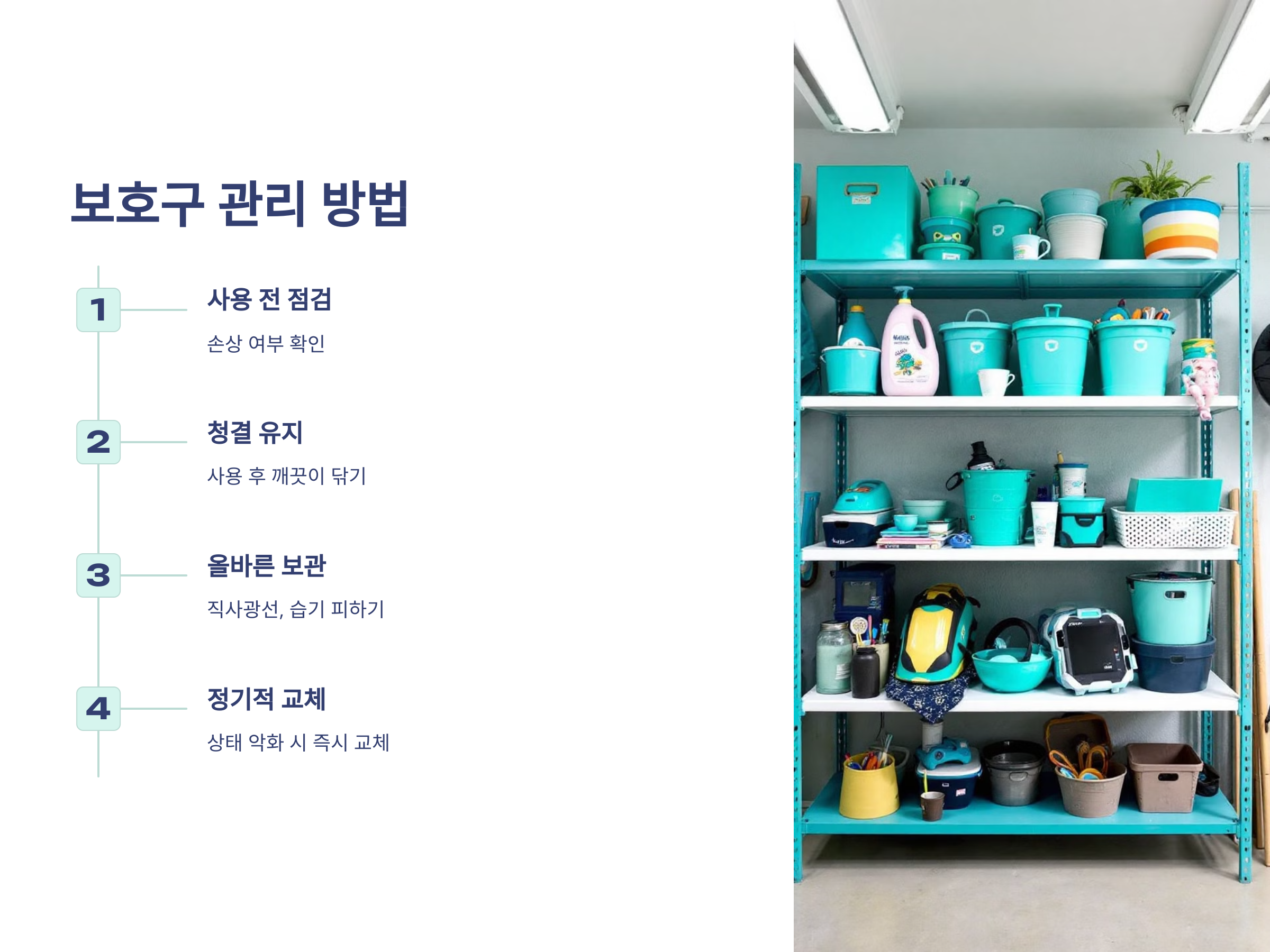 - 청결 유지: 사용 후 보호구를 깨끗이 닦고 보관하세요.