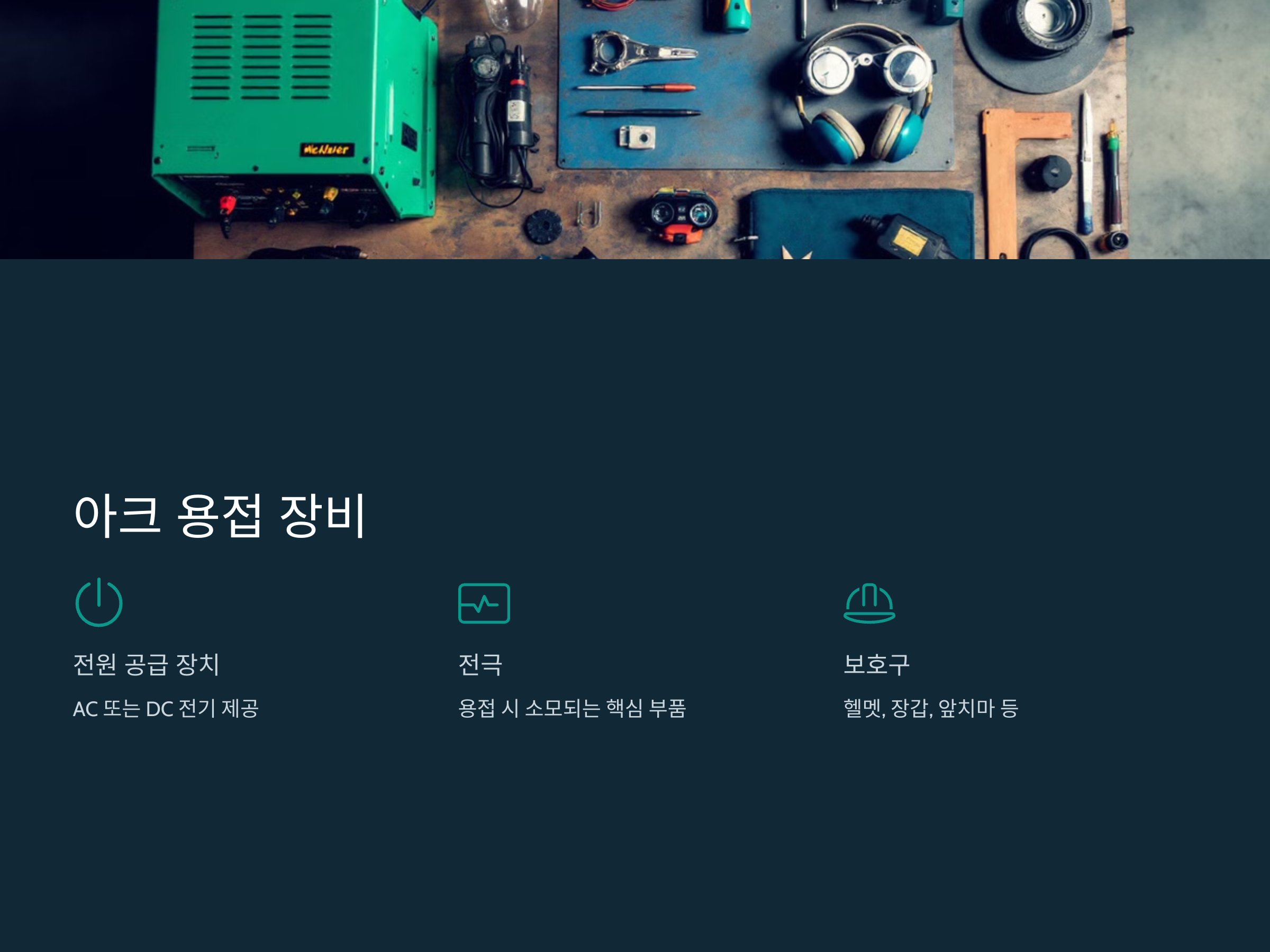 아크 용접을 위해 필요한 장비는 간단하지만, 각 구성 요소의 기능을 잘 이해하고 적절히 사용할 필요가 있습니다.
