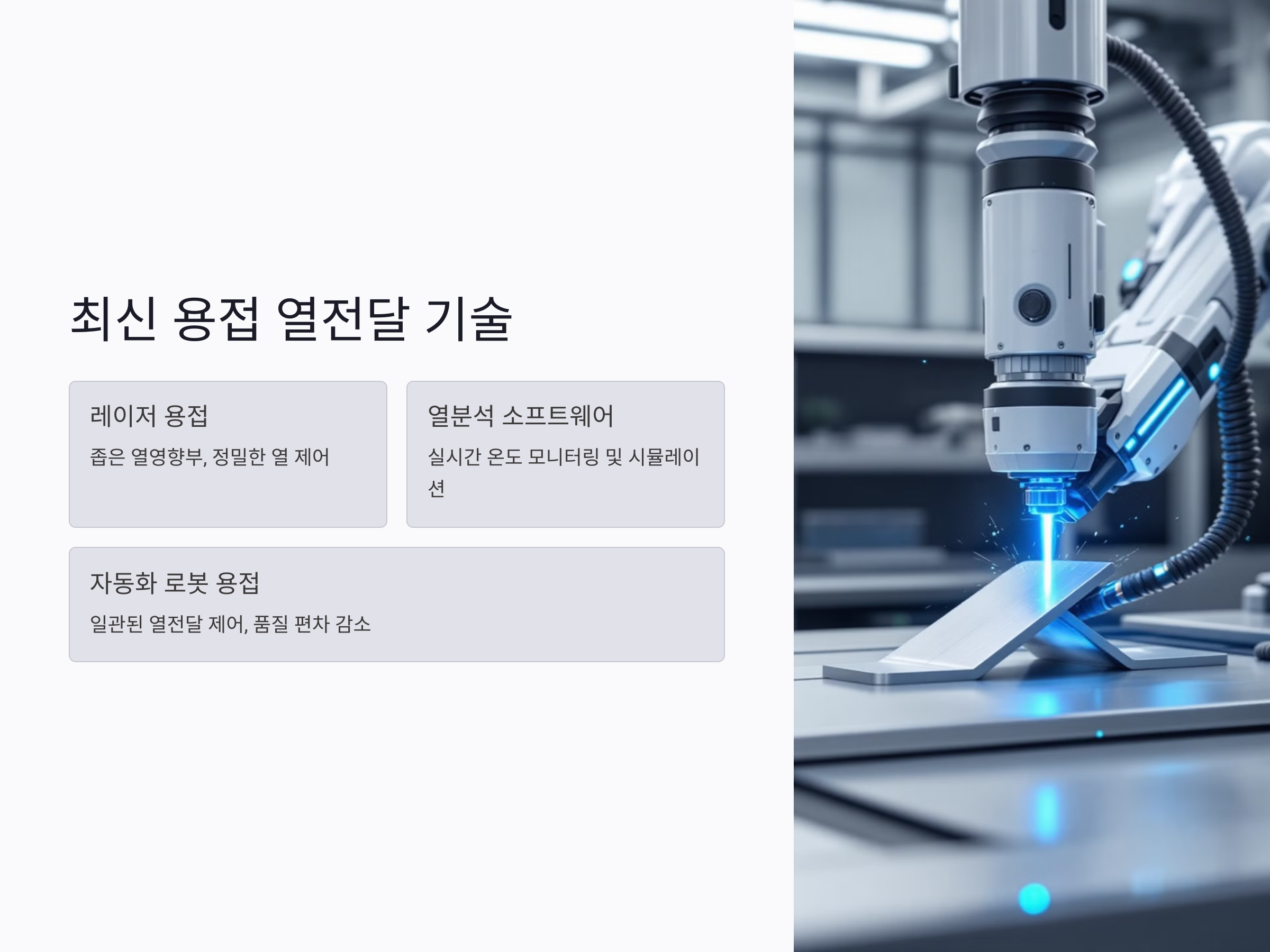 - 작업 환경 관리: 용접 부근의 공기 흐름을 제어하여 불필요한 열 손실을 줄입니다.