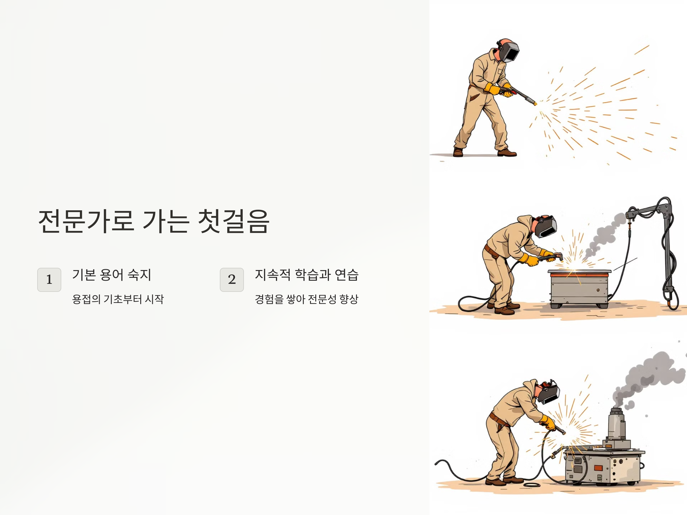 용접 기술은 지속적인 학습과 연습이 필요합니다. 기본 용어부터 숙지한 후, 실무에 적용하며 경험을 쌓아가세요. 높은 품질과 효율성을 목표로 삼는다면 전문가로 거듭날 수 있습니다.
