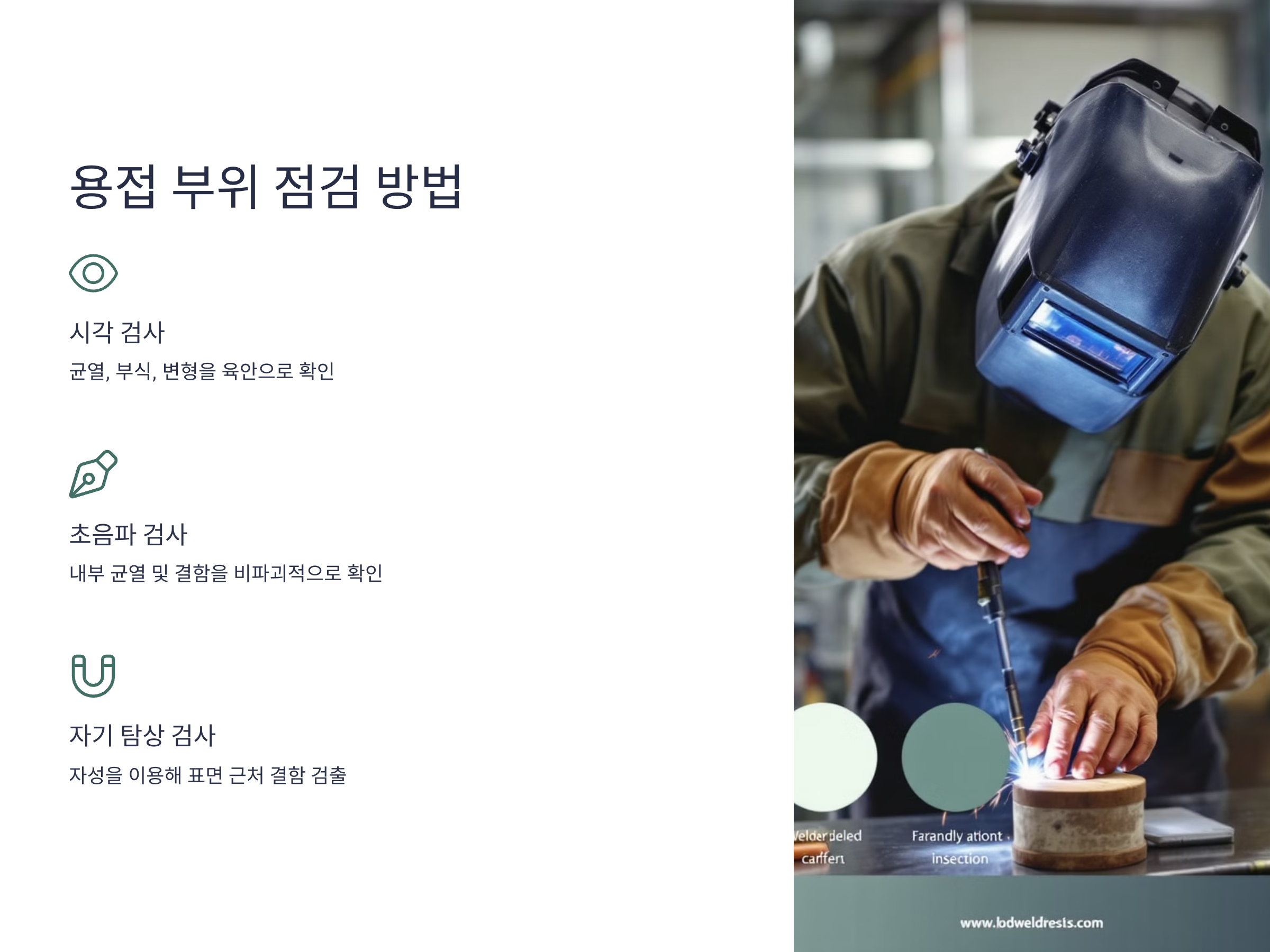 - 정기 점검 계획: 일정 주기로 용접 부위를 점검하여 새로운 손상을 조기에 발견합니다.