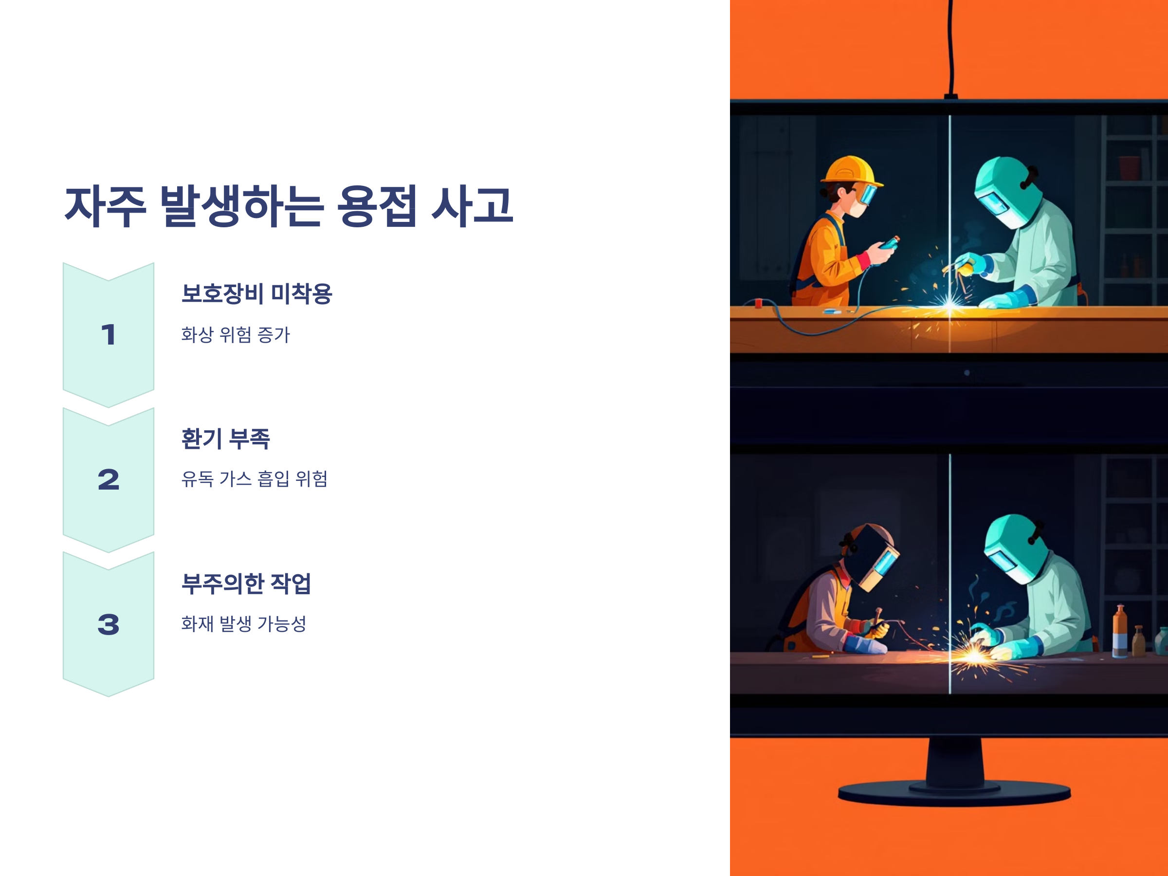 용접 작업 중 빈번히 발생하는 사고 사례와 그 원인을 알아보면서 교훈을 얻을 수 있습니다.
