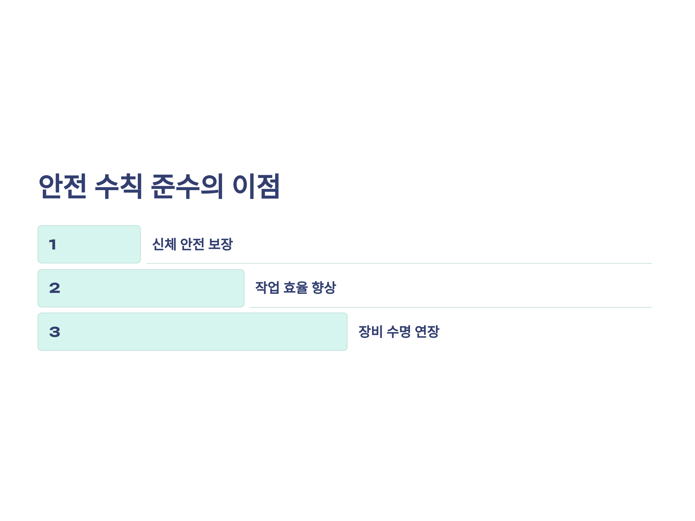 안전 수칙을 준수하면 작업자는 다음과 같은 이점을 누릴 수 있습니다: