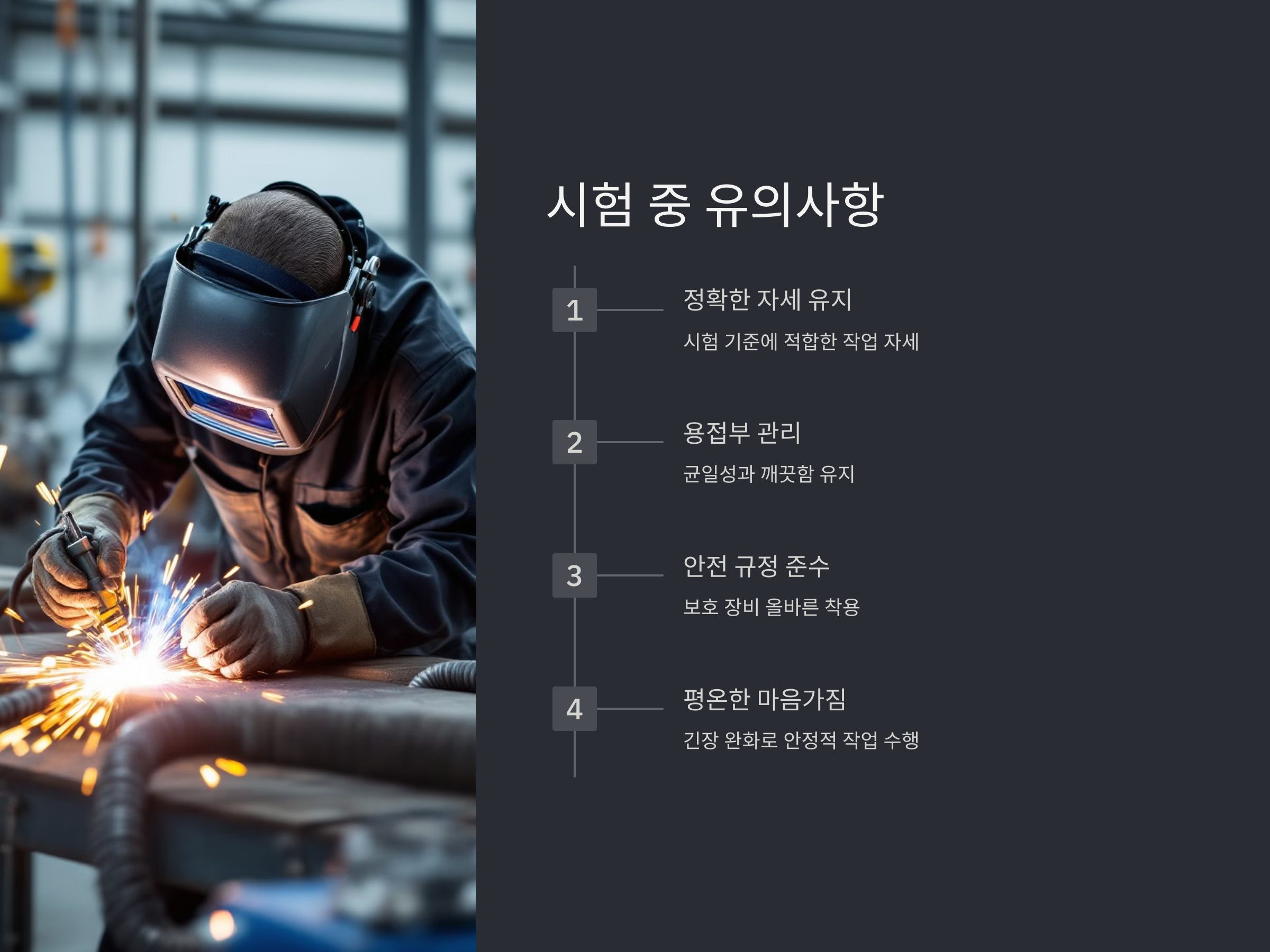 - 평온한 마음가짐: 긴장을 풀고 안정적으로 용접 작업을 수행하는 것도 중요한 요소입니다.
