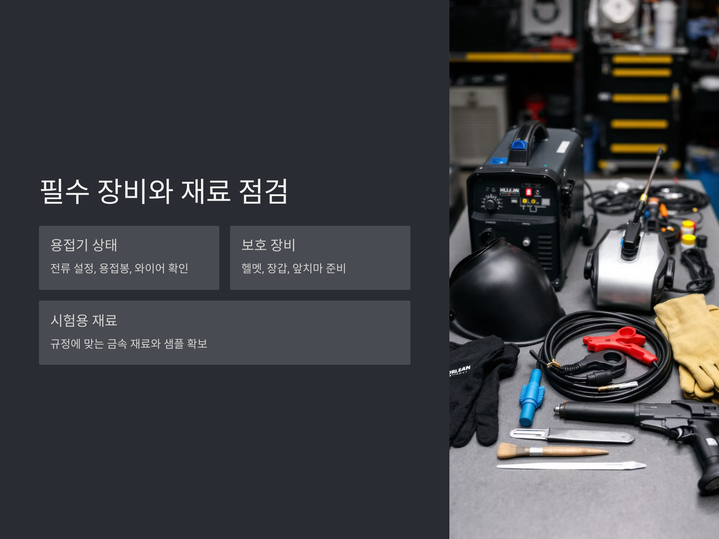 시험 당일 사용하는 장비와 재료의 준비는 합격을 좌우합니다. 주요 체크 포인트는 다음과 같습니다: