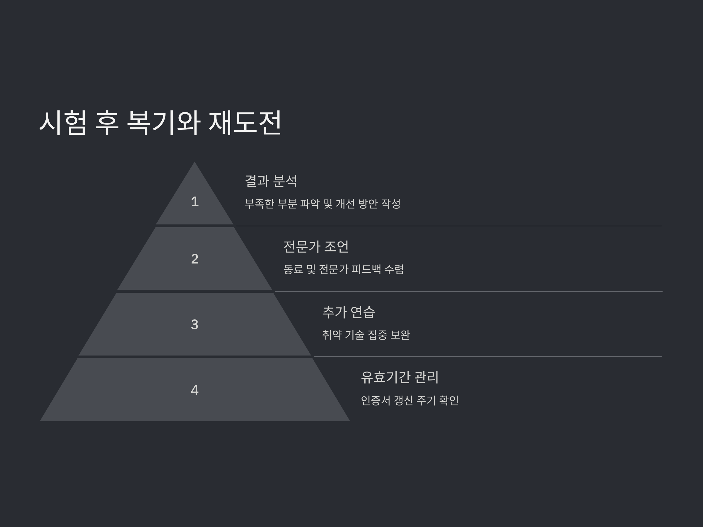 불합격했더라도 좌절하지 마세요. 철저한 복기 과정을 통해 다음 시험에서 성공할 수 있습니다.