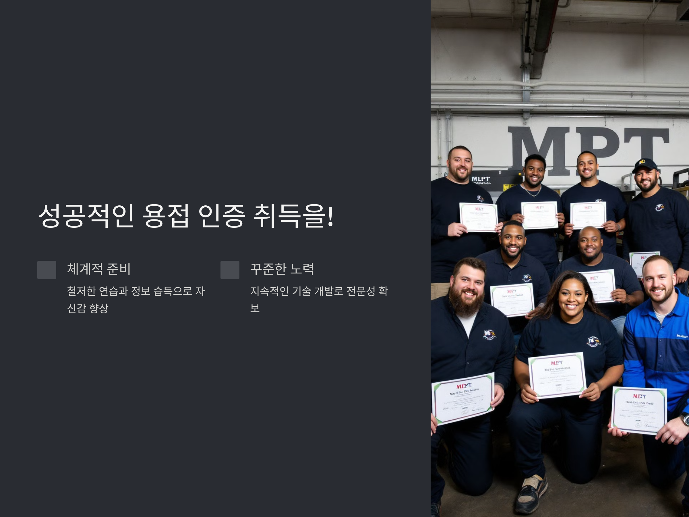 접 인증 시험은 용접공으로서의 전문성을 증명하고 경력을 확장하는 데 중요한 역할을 합니다. 특히, 시험 준비는 체계적이고 철저하게 이루어져야 하며, 최신 트렌드와 실질적인 요구 사항을 반영해야 합격률을 높일 수 있습니다. 이 글에서는 용접 인증 시험을 준비하는 구체적인 방법과 팁을 제공하며, 합격 확률을 높이는 데 도움이 될 정보를 안내합니다.