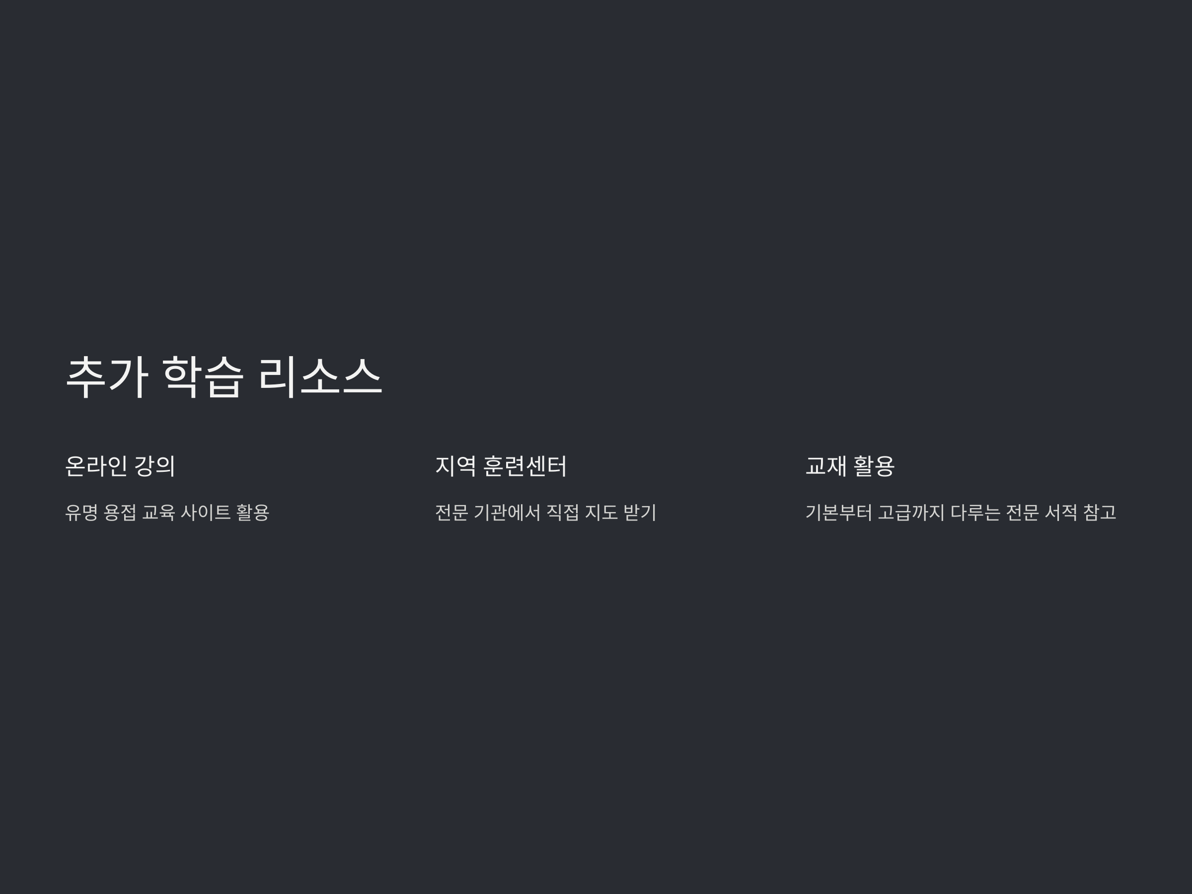 - 지역 훈련센터: 전문 기관에서 직접 지도를 받을 수 있습니다.