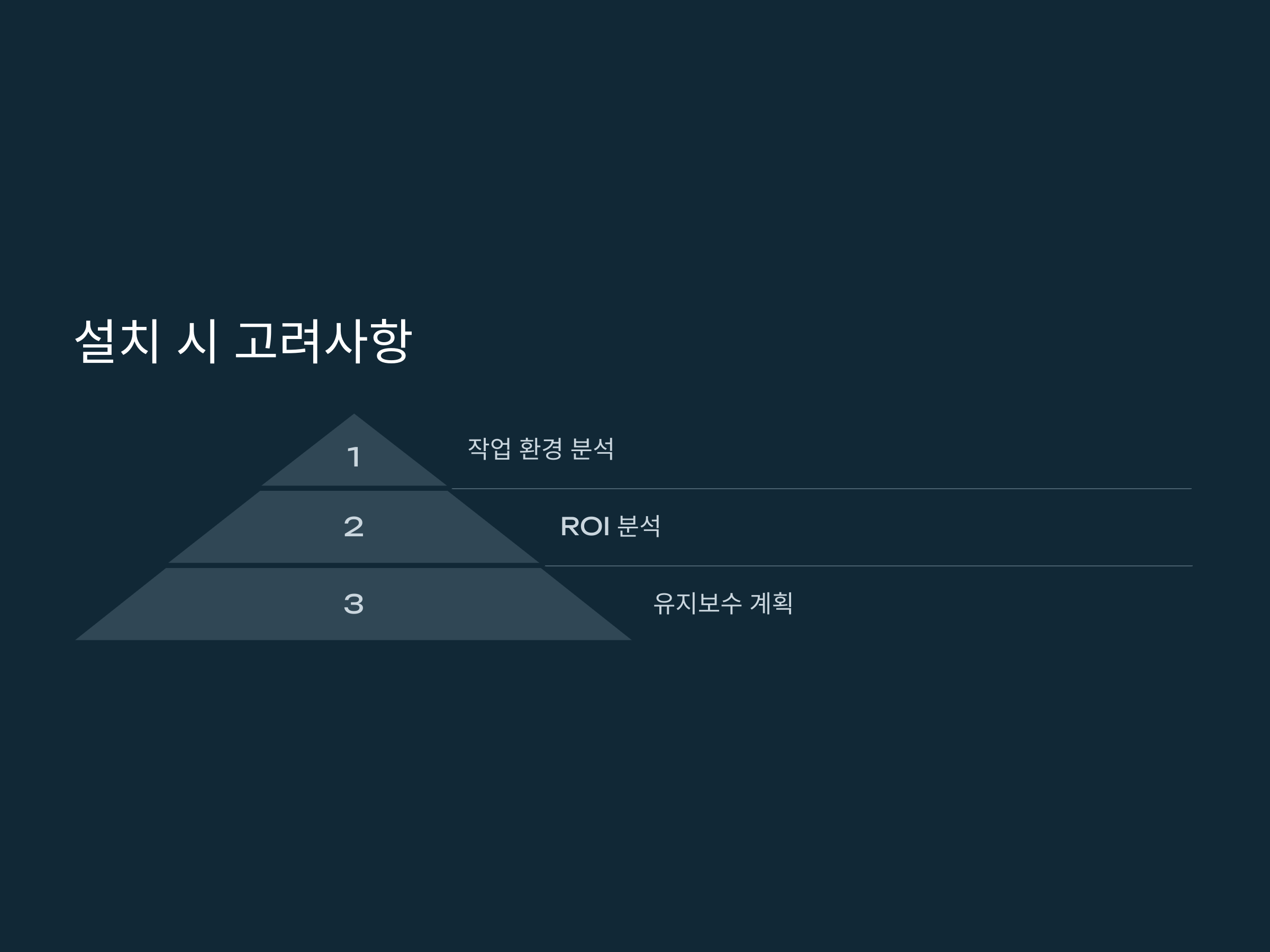 설치 전 작업 환경과 공정 요구사항을 철저히 분석하여 최적의 시스템을 선택해야 합니다.