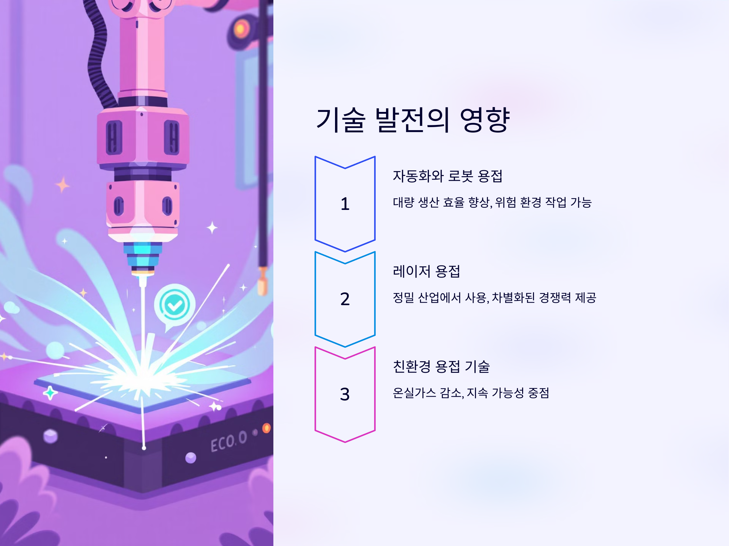 - 자동화와 로봇 용접: 자동화는 대량 생산 현장에서 작업 효율을 높이고, 위험한 환경에서도 작업을 안전하게 수행할 수 있도록 지원합니다.