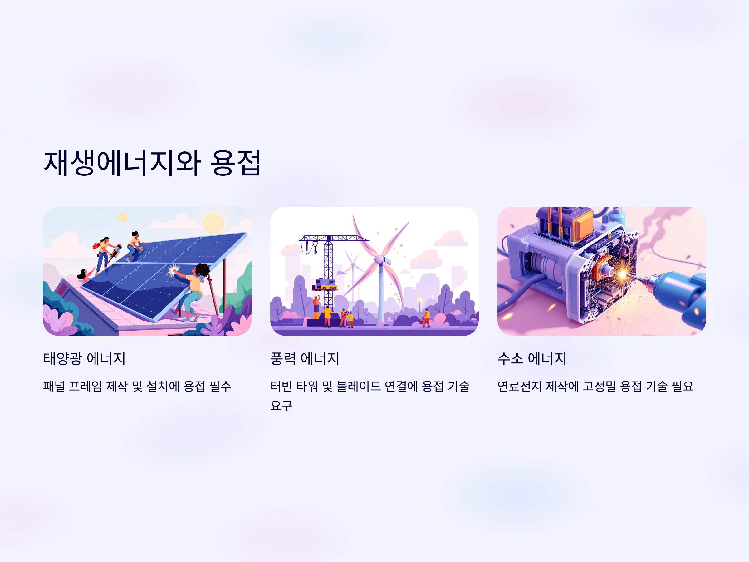 - 재생에너지 산업의 성장: 태양광, 풍력, 수소 에너지 등 신재생에너지 설비 제작에서 용접 기술은 필수적입니다.