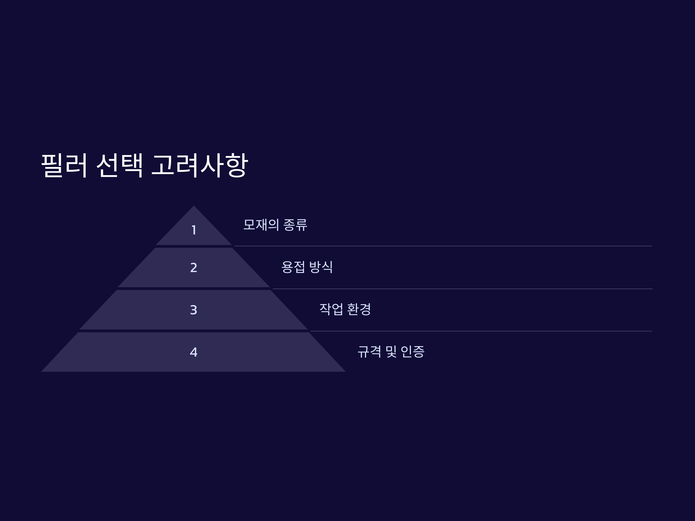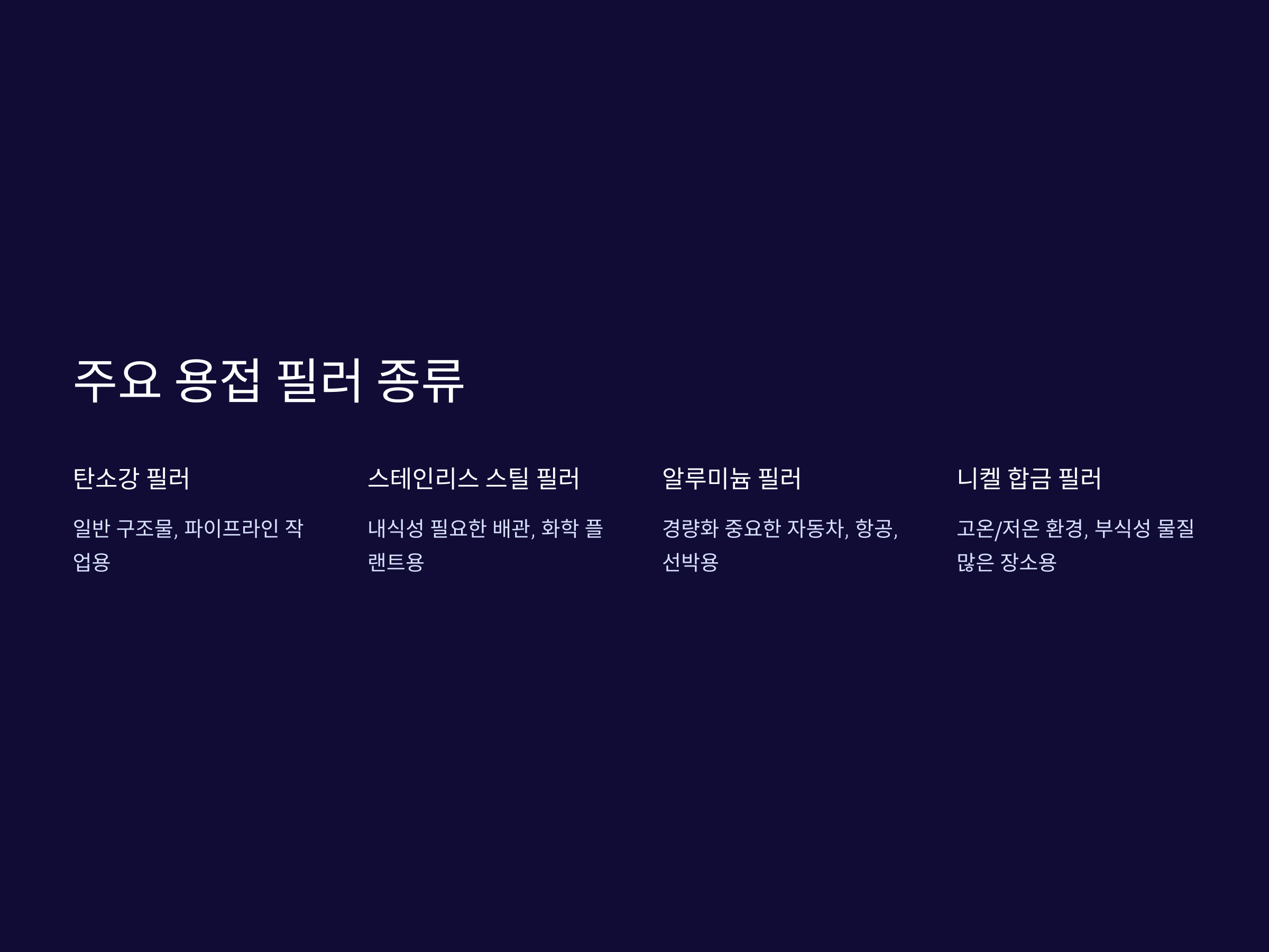 - 이종 재료 접합: 스테인리스와 탄소강 같이 서로 다른 금속을 접합할 경우, 두 재료의 성질을 동시에 만족하는 필러를 선택해야 합니다.